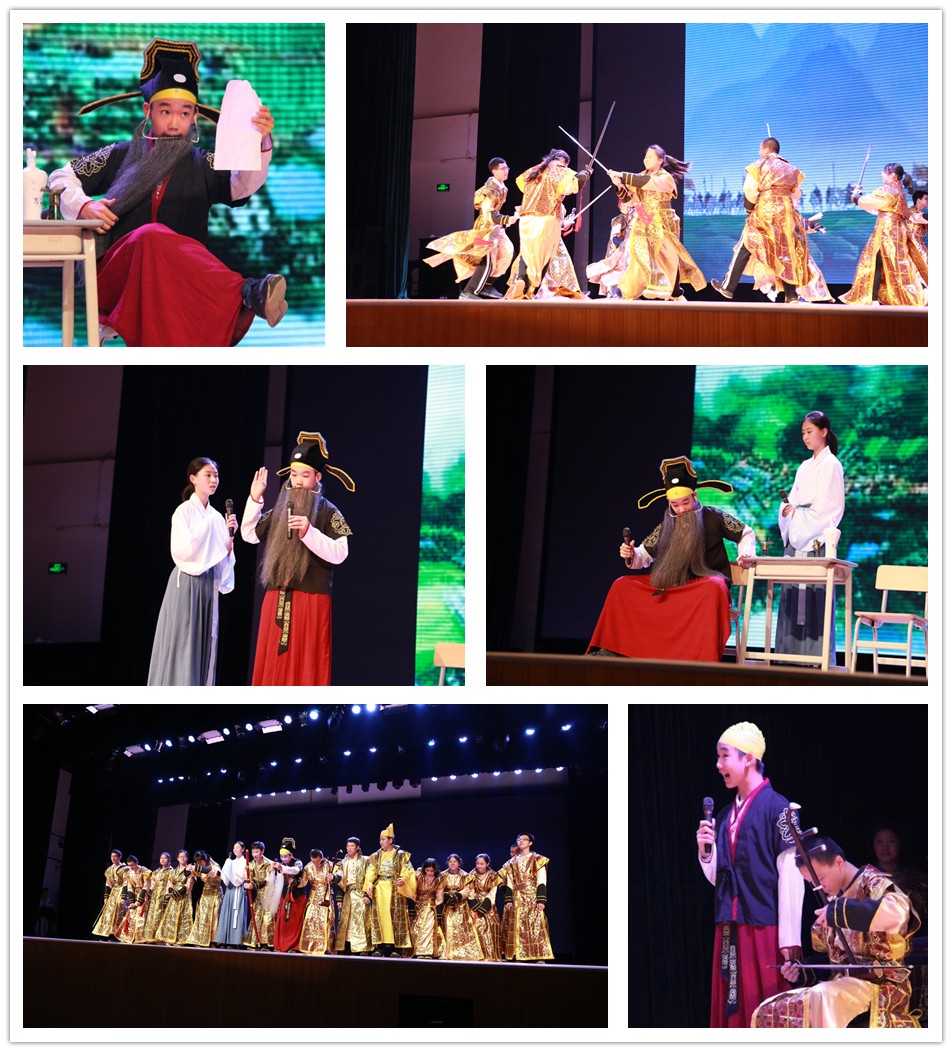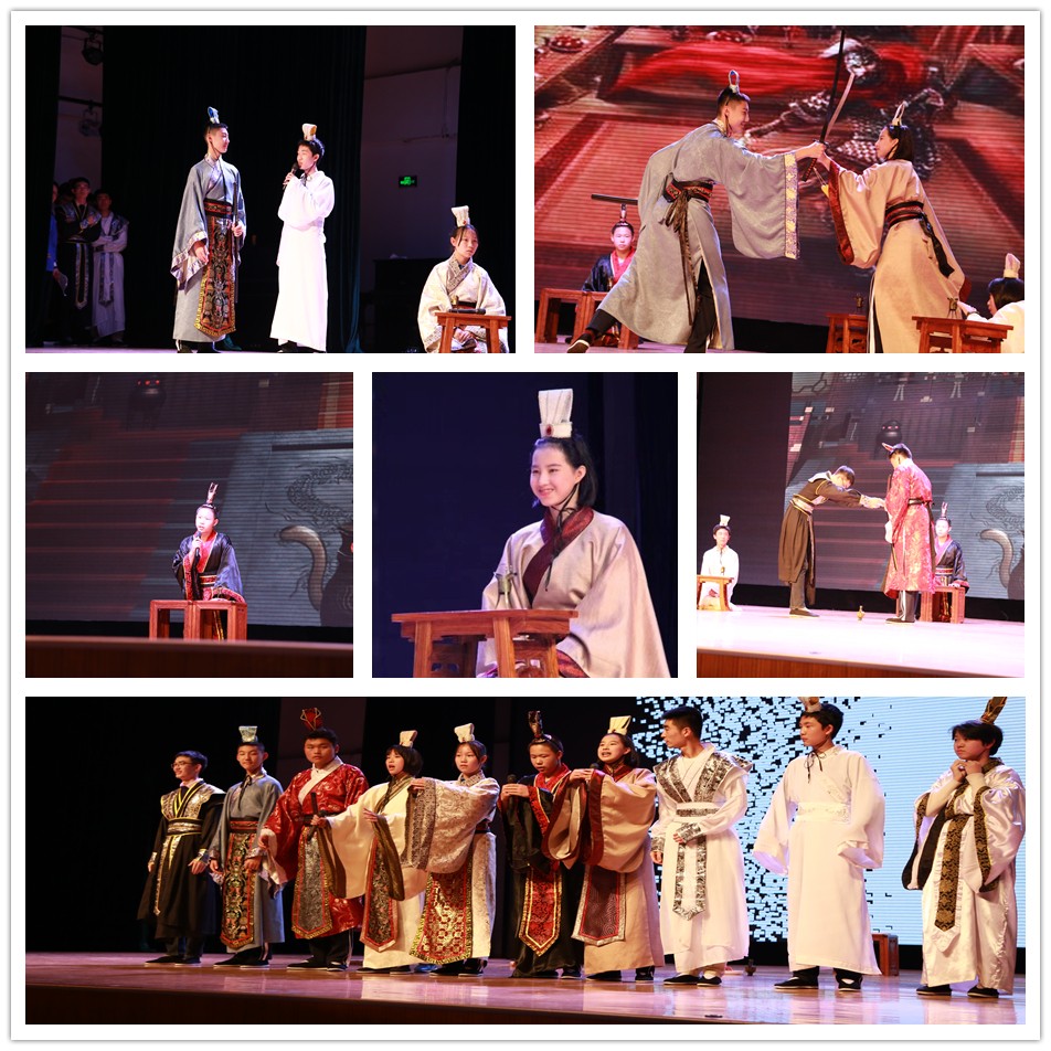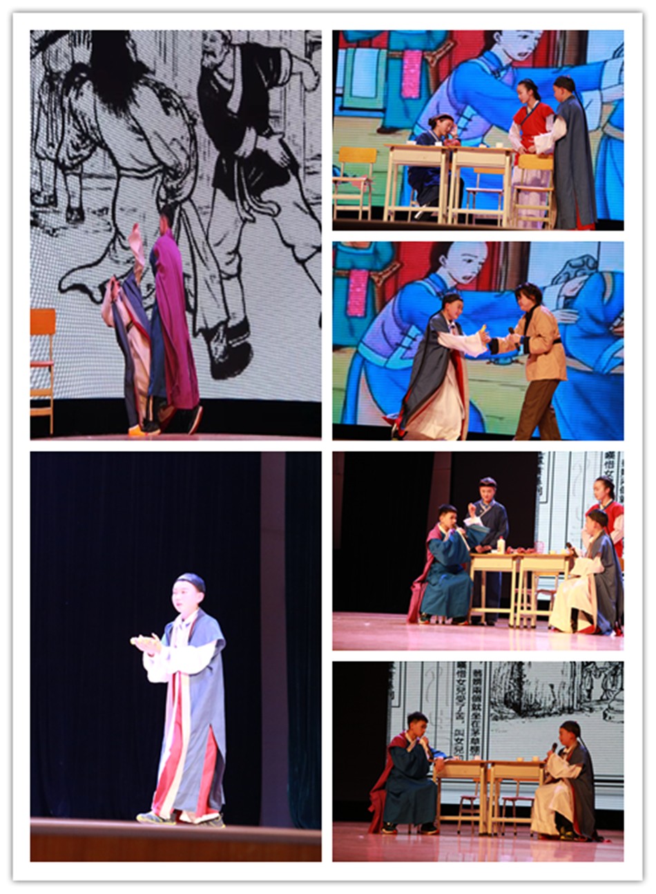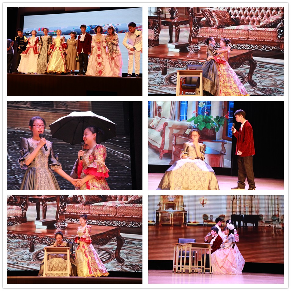 后面的节目,也不甘示弱,各有千秋。有6班同学带来的安徒生的经典童话《皇帝的新装》,歌舞设计创意无穷;有由7班和9班两个班级演绎各有千秋《鸿门宴》,把“楚汉之争”搬到舞台;有15班同学带来融入京剧表演的《花木兰》;有10班同学带来的外国名篇《项链》;更有4班同学情节曲折演技精湛的《范进中举》!