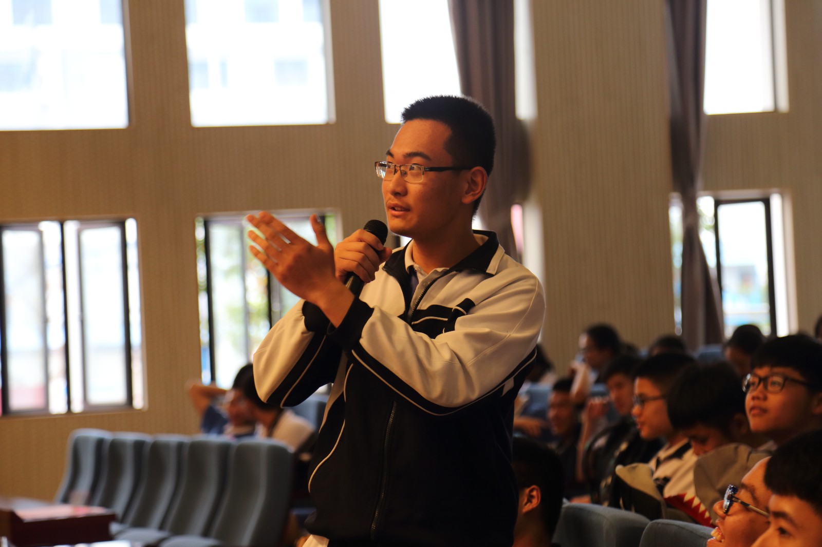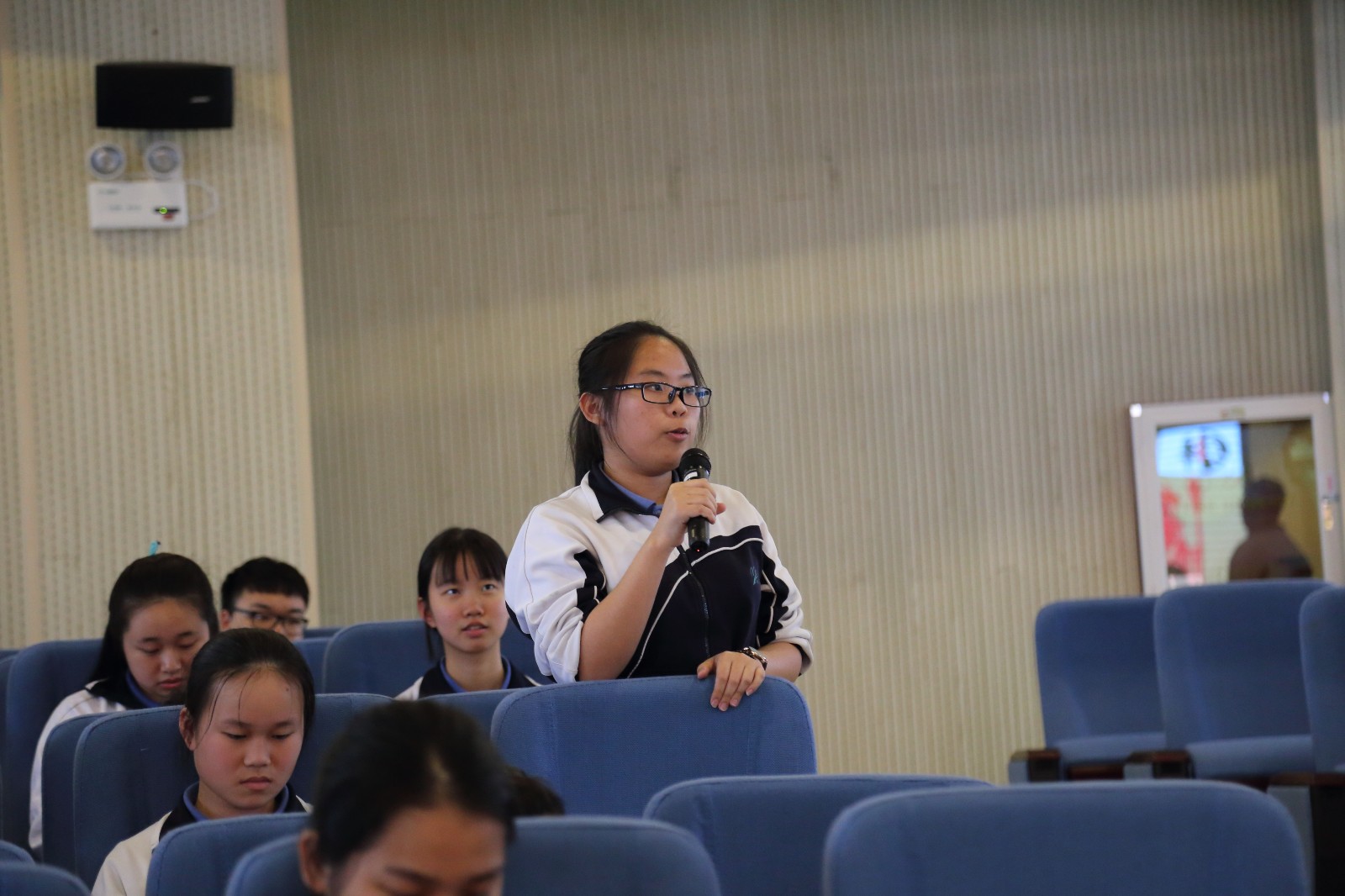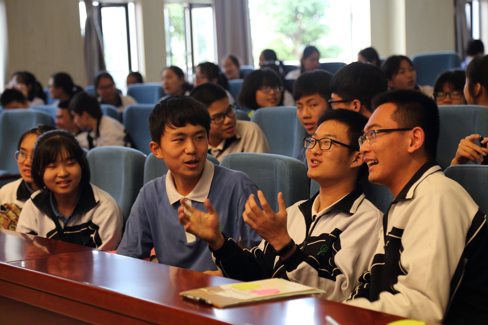 (李伟雄报道 龙小月摄影)3月20日下午,深圳高级中学(集团)东校区在小报告厅举行了以“敢问路在何方”为主题的大型“GLOBE”活动课。该课程由高一(21)班设计、组织和主导,全体师生积极参与,充分展现了东校区师生们的风采。