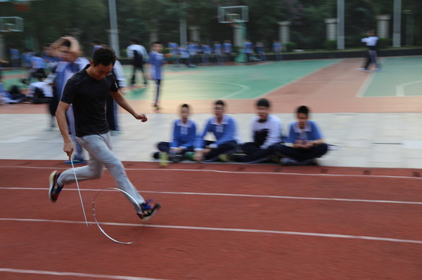 随着陈校的一声令下,比赛正式开始!数条赛道上,早已俯背躬身跃跃欲试的选手们疾速出击,心急火燎地推着铁环向前奔袭,霎时田径场人潮涌动,一片欢腾。