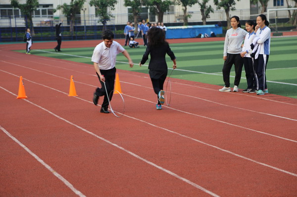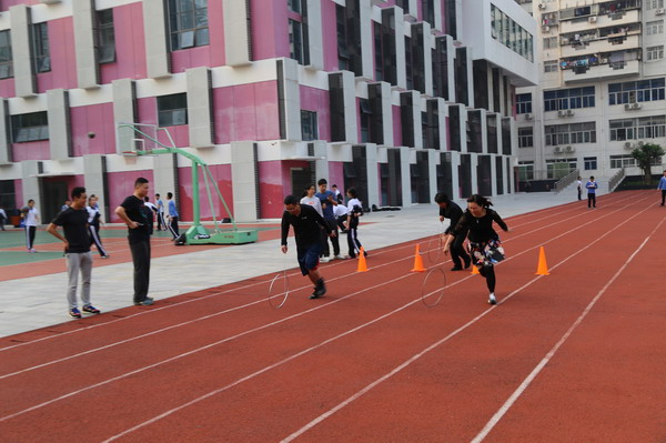 ——初二年级组举行教工“滚铁环”接力赛