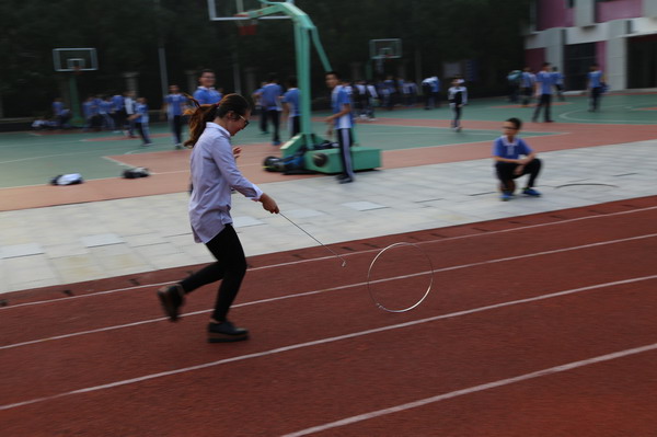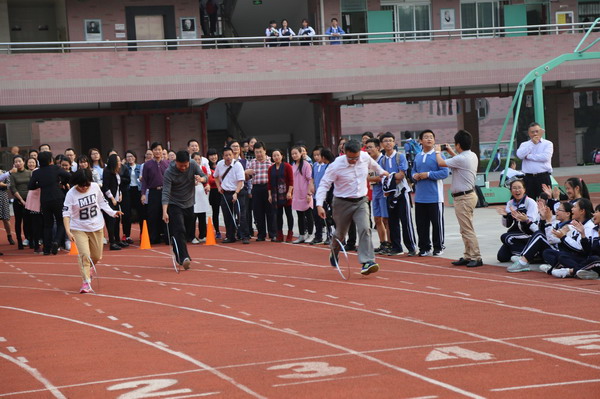(李兴光报道 刘俊彪摄影)12月26号(星期一)下午4:40,深圳的冬日温暖如春,阳光和煦,十分宜人。南校区宽阔的田径场上一片欢声笑语,为了提高大家的体育锻炼意识,增进身心健康,初二年级组的全体教职员工和部分家长进行了一场别开生面的“滚铁环”接力赛,共同追忆那些我们一起度过的童年。